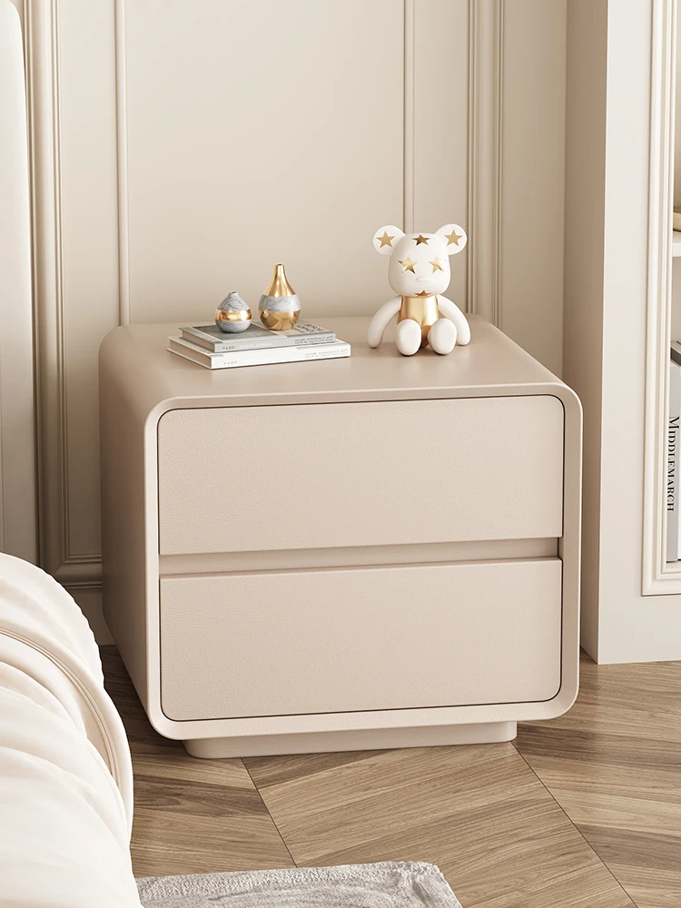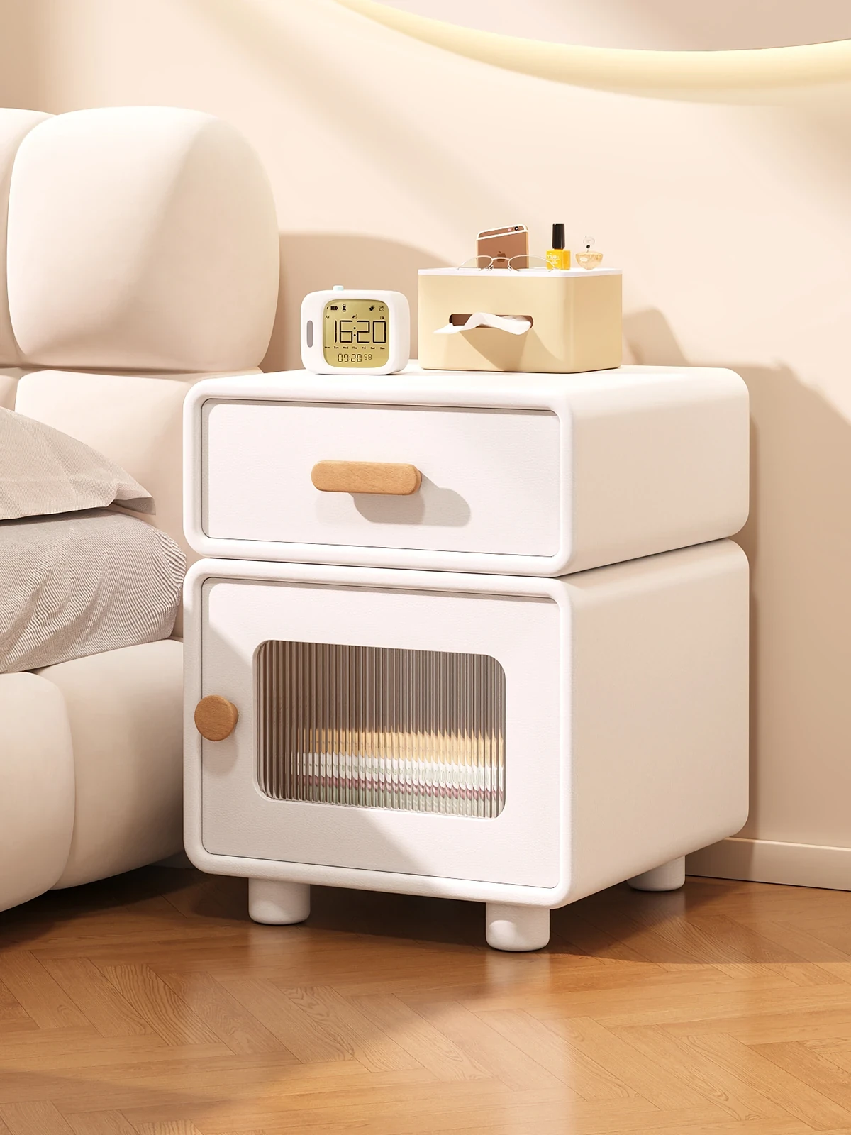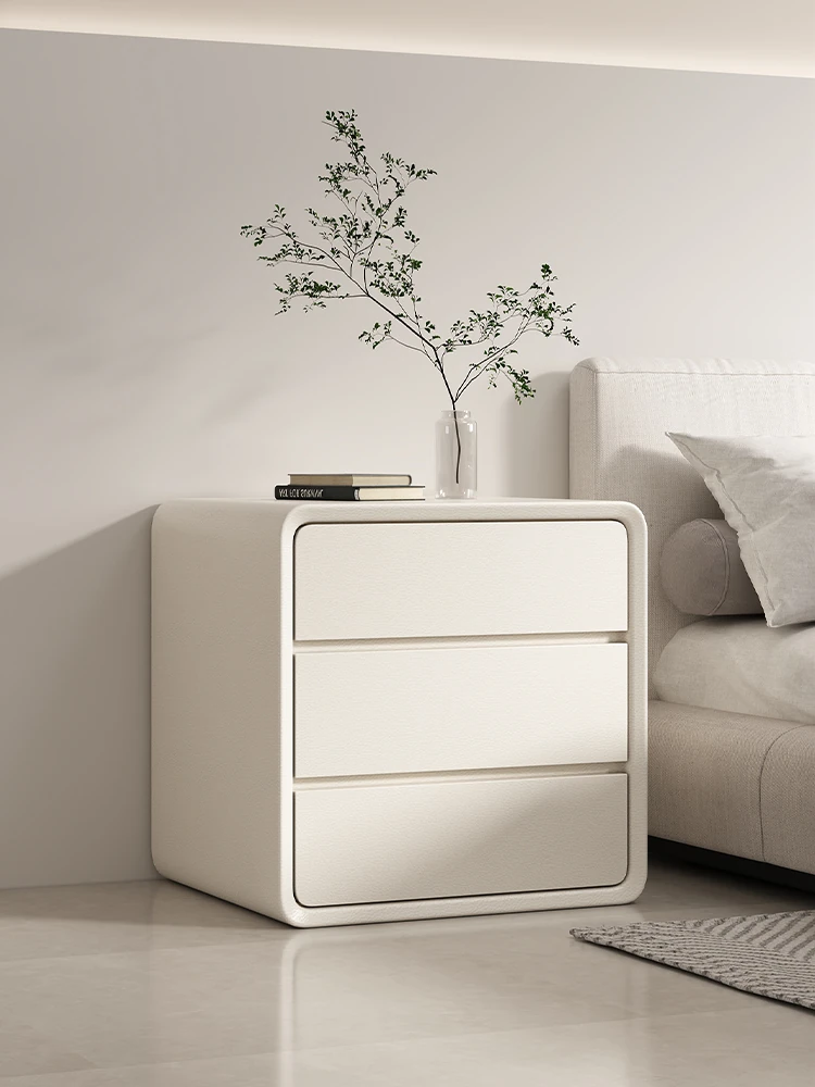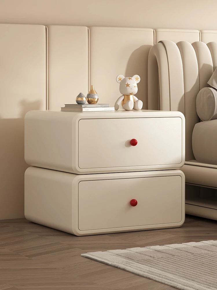 クリーム風の木製ナイトテーブル|シンプルでモダンな収納|寝室に最適な軽 Luxuryな小型サイドキャビネット【実用性と美しさを兼ね備えたデザイン】