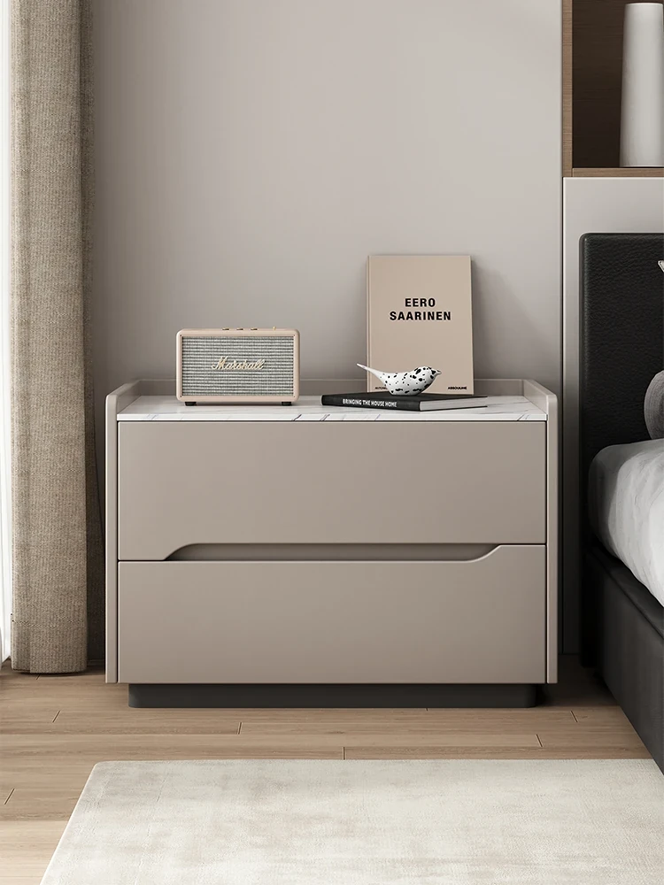 2024新作!シンプルでモダンなデザインの天然木製ベッドサイドキャビネット。高級感あふれるスレート収納で、あなたの寝室をスタイリッシュに演出します。手頃な価格で、心地よい空間を実現!