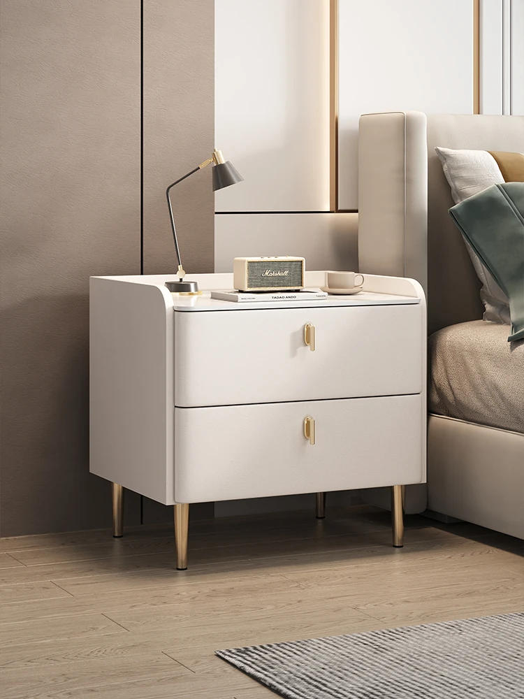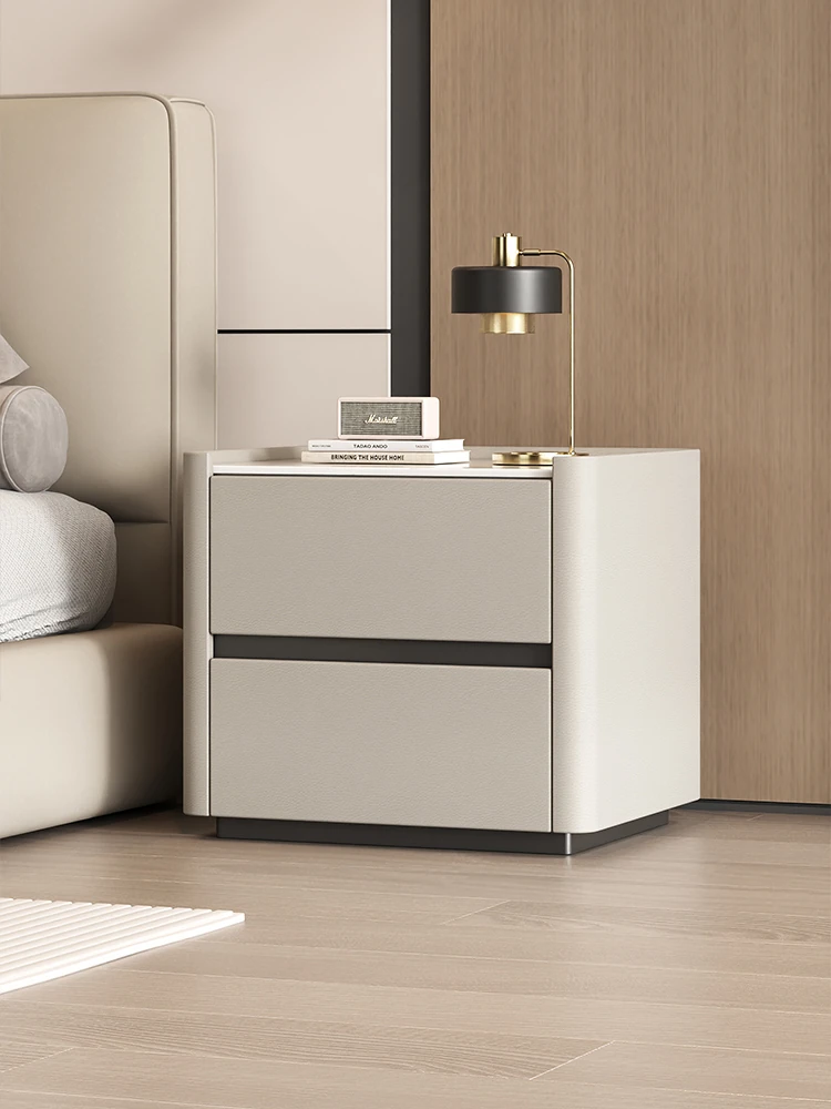 優雅なモダンデザインの無垢材製高級レザー寝室用ナイトテーブル - おしゃれな空間を演出し、快適な睡眠環境を提供します!
