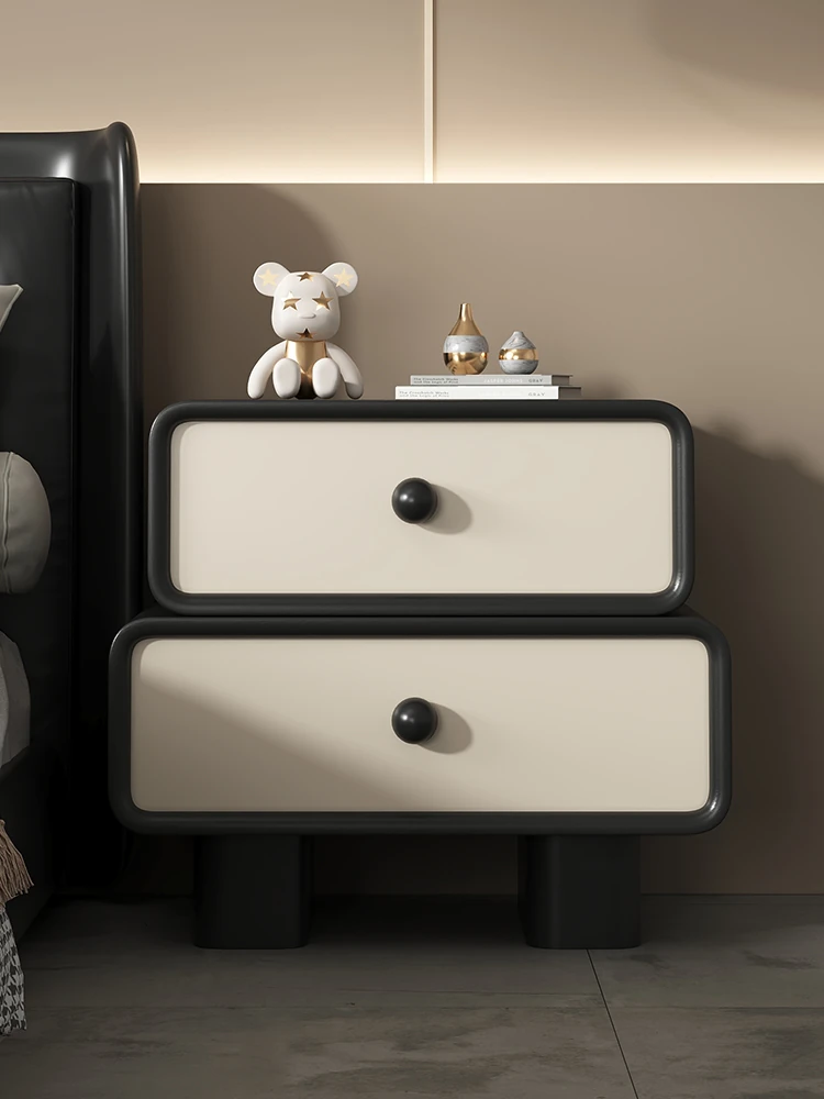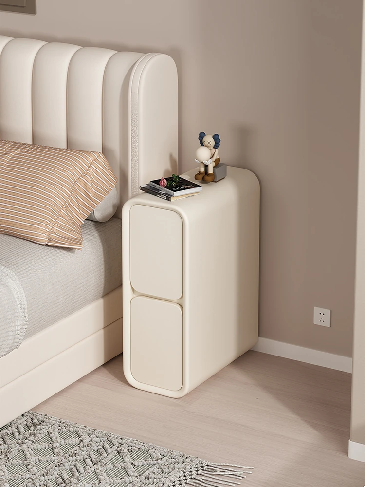 クリーム風デザインのベッドサイドキャビネット - シンプルでモダンな小型無垢材製、スリムなスペースにもぴったりのラグジュアリー極 minimalist収納キャビネット。あなたの寝室に洗練された美しさをプラス!