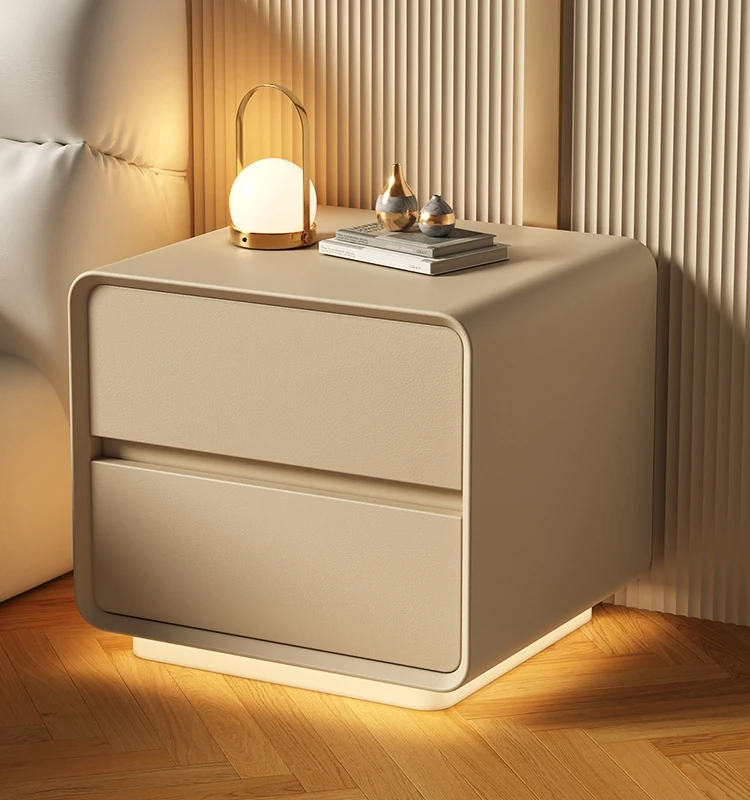 クリーム色の風合いが魅力的なベッドサイドキャビネット - シンプルでモダンなデザイン、軽やかな収納力を持つ小型キャビネット。上質感あふれる寝室にぴったりのアイテムです。