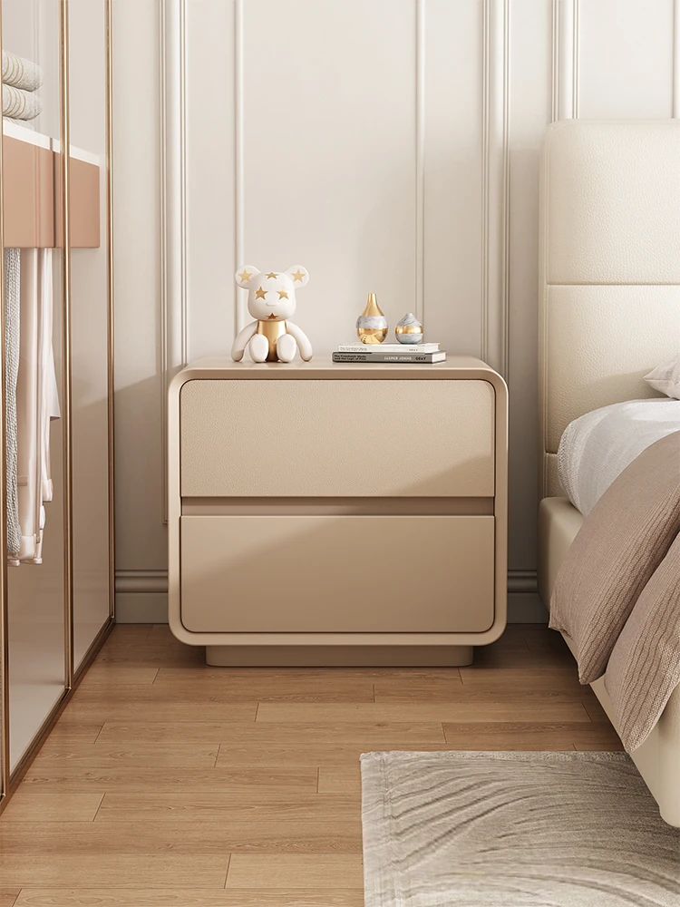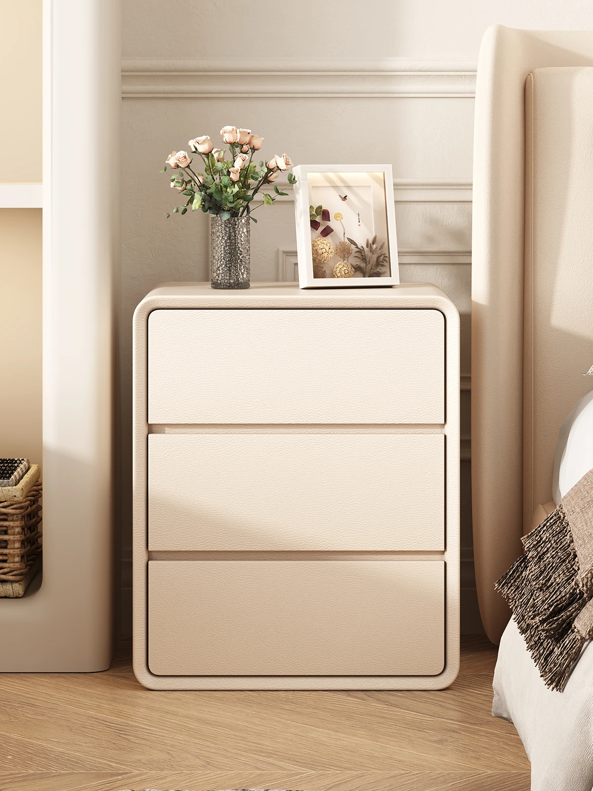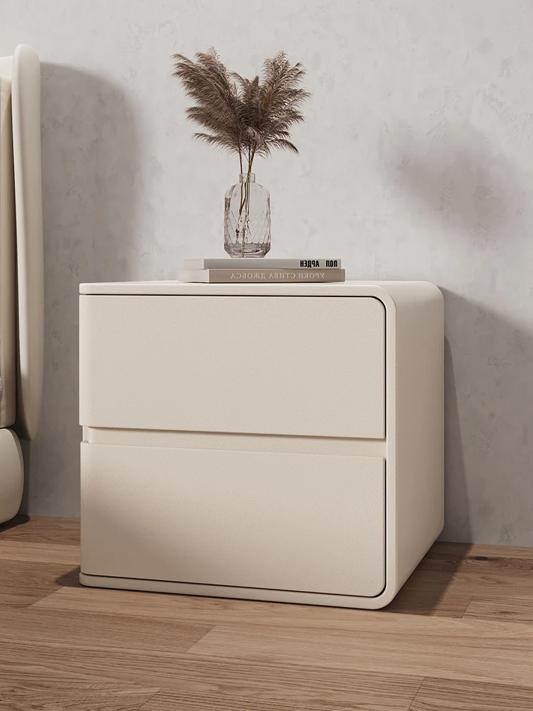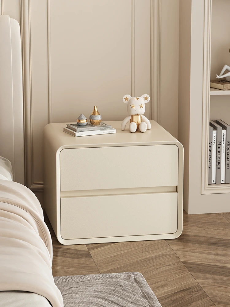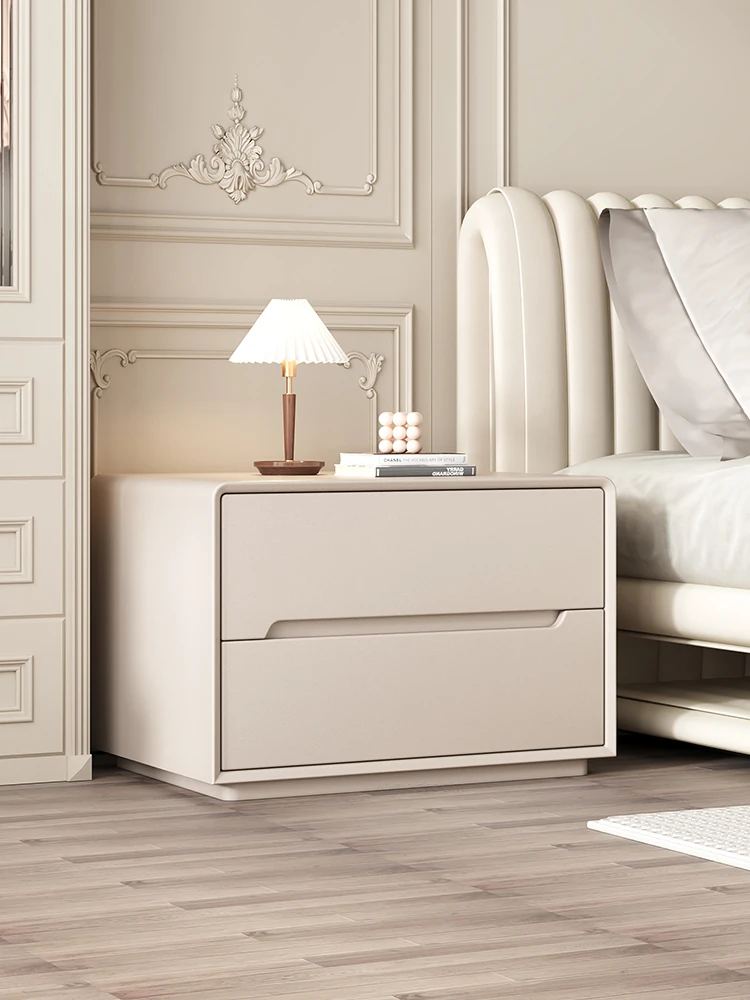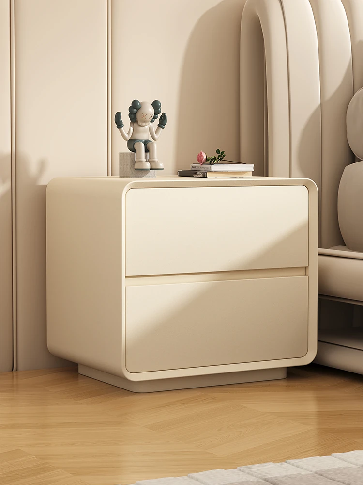 全木製クリーム風シンプルモダンミニマルベッドサイドキャビネット|寝室用高級感あふれる収納家具
