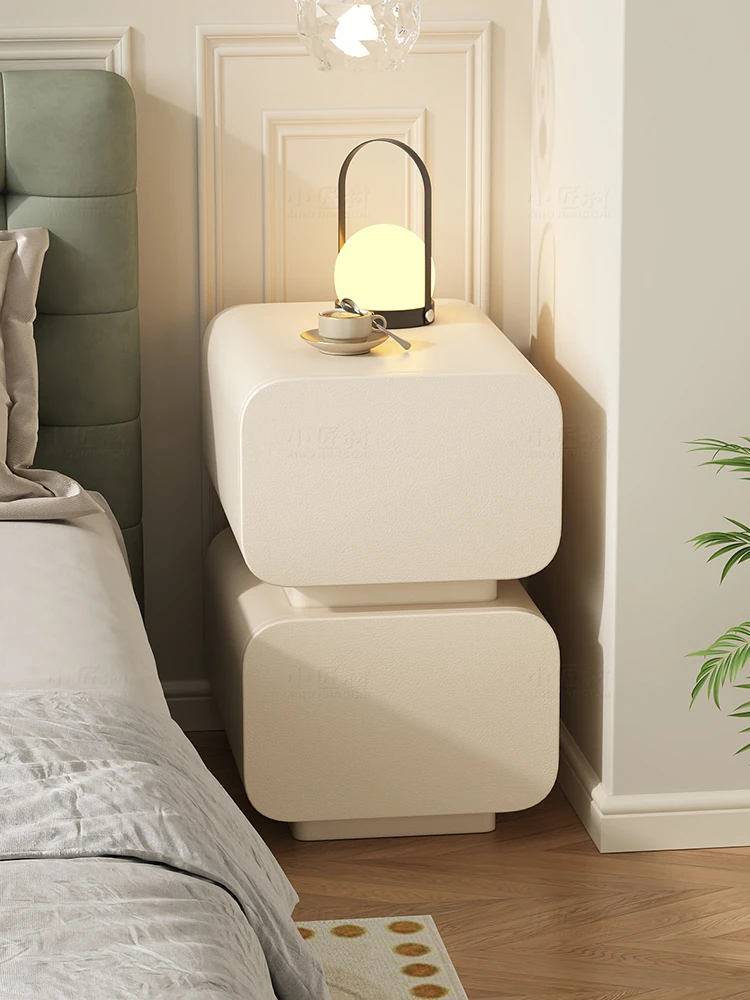 クリーム風ベッドサイドテーブル - シンプルでモダンなデザイン、洗練された高級感を演出!実用的な無垢材の小型キャビネット、収納力抜群で、快適な寝室を実現します。