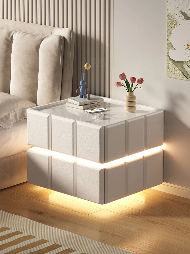 スマートナイトテーブル|シンプルモダンな無垢材使用|照明付きベッドサイドキャビネット|軽やかな高級感と収納力を兼ね備えた家庭用寝室収納家具