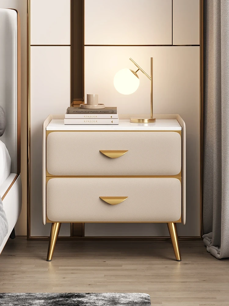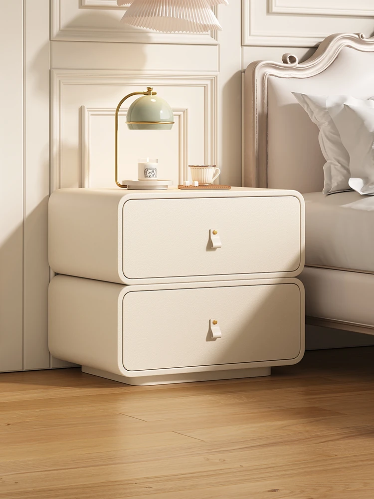 全実木ベッドサイドテーブル、シンプルモダン2024新作、ラグジュアリー感溢れるコンパクトなクリーム風寝室用サイドキャビネット