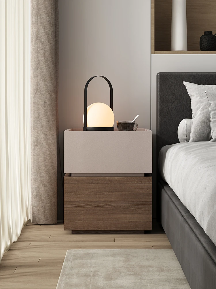 全実木焼付塗装シンプルモダンロックボードナイトテーブル - 高級感あふれる素材と洗練されたデザインで、居心地の良い空間を演出します。収納力抜群で、生活をもっと便利に!