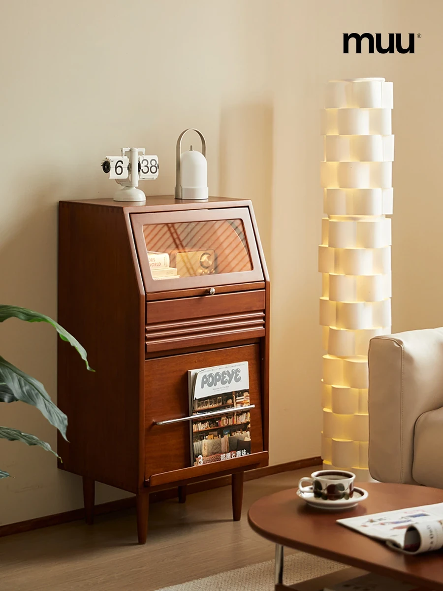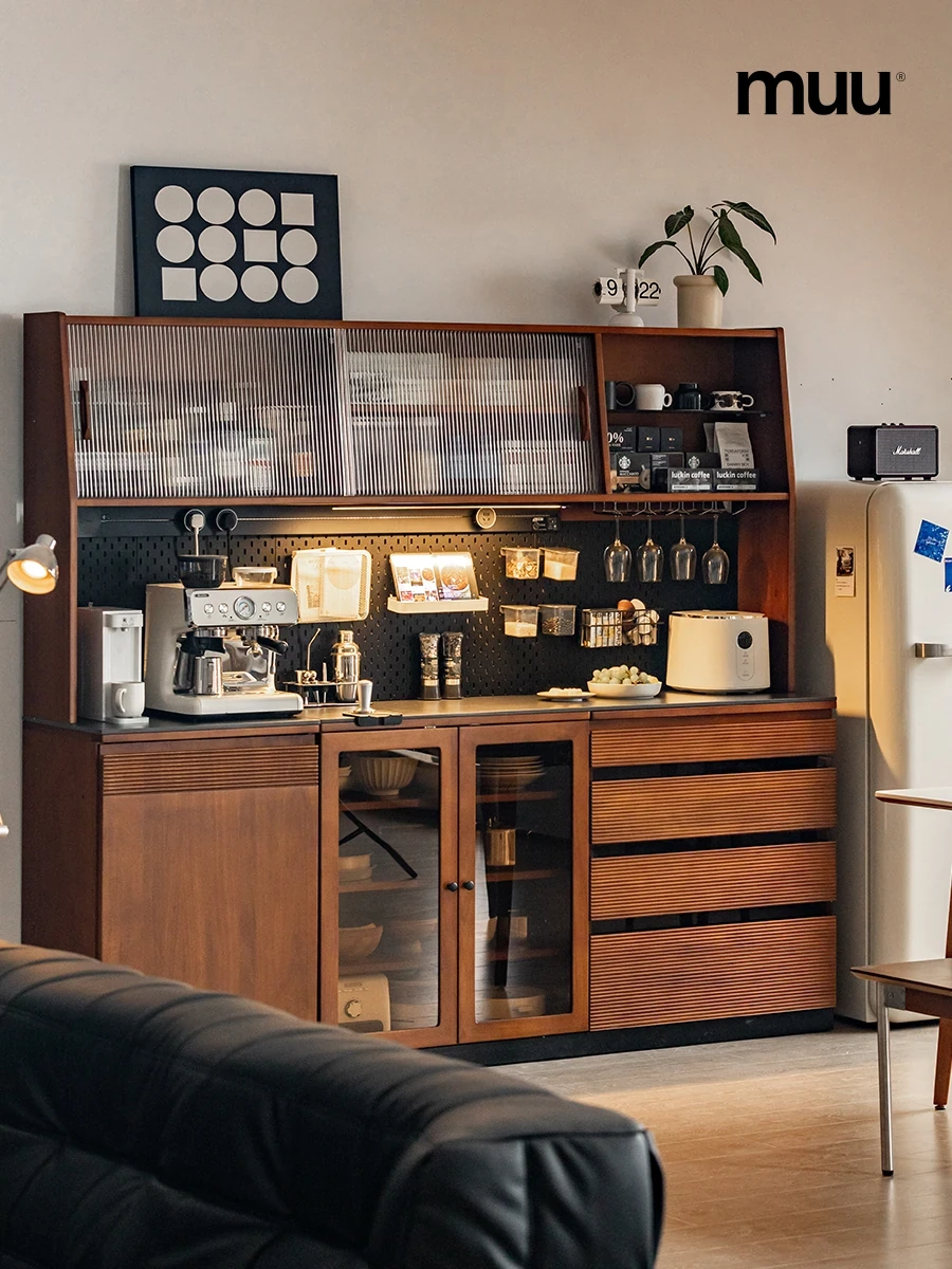 MUU無垢材のサイドボード収納キャビネット・ヴィンテージスタイルの北欧・和風のキッチン用小型ダイニング茶器棚 - スタイリッシュで機能的、コンパクトなスペースに最適!