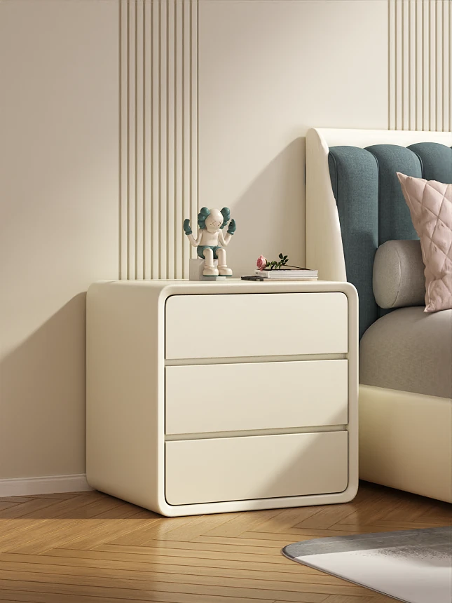 クリーム風ベッドサイドキャビネット | シンプルでモダンなデザイン | 高級感あふれる実木製小型収納 | 寝室にぴったりな一品 | スタイリッシュな暮らしを実現!