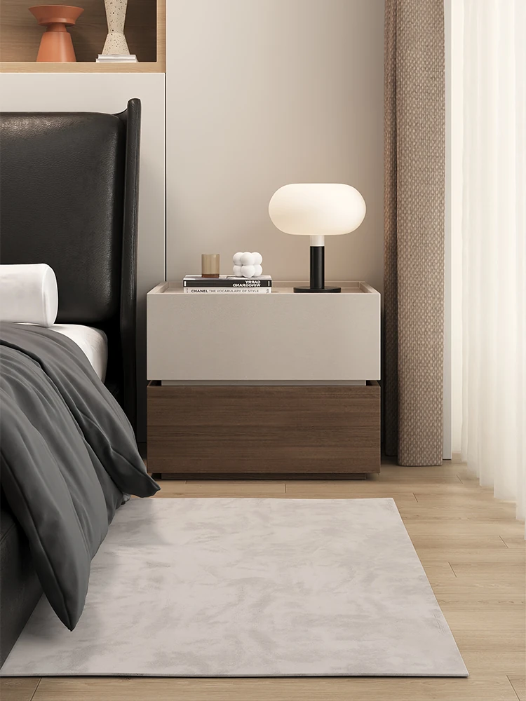 2024新作のシンプルでモダンな無垢材ベッドサイドキャビネット|高級感あふれるクリーム風デザイン|省スペースでおしゃれな収納|あなたの寝室を洗練された空間に変えます!