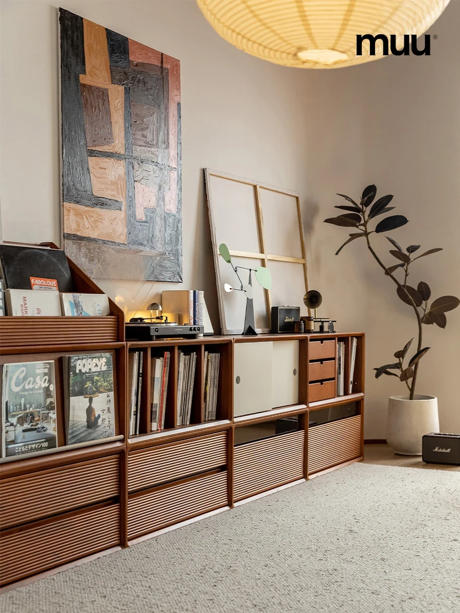 MUU Nordic Solid Wood Bookshelf - Versatile Display Cabinet for Living Room, Free-Standing TV Stand, and Sideboard Storage Solution. Perfect for Organizing and Showcasing Your Treasures!