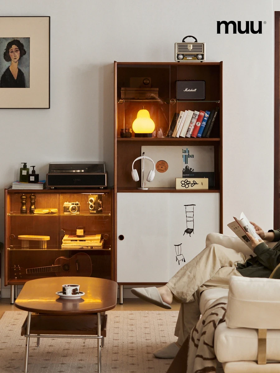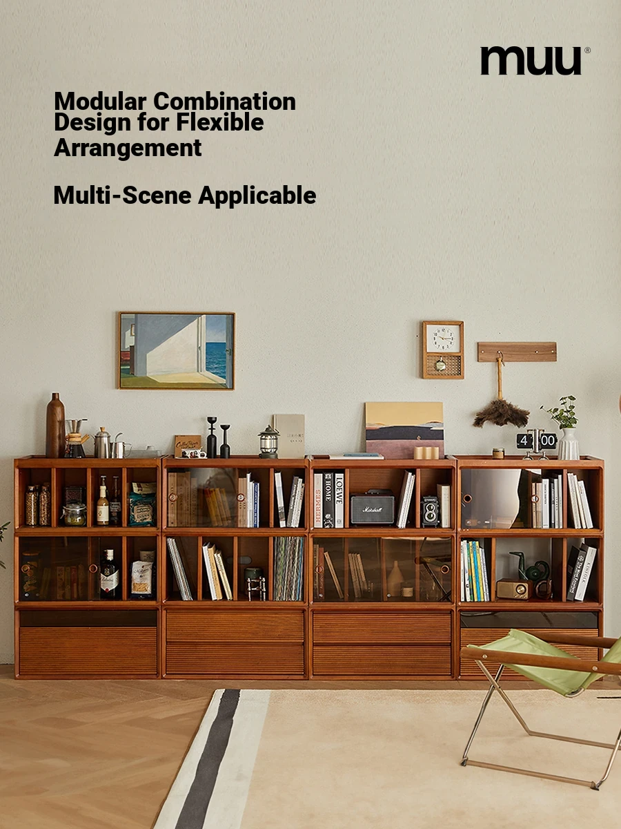 MUU Vintage Solid Wood Bookcase - Scandinavian Style Combination Bookshelf for Home, Japanese-Inspired Storage and Display Unit, Perfect for Small Spaces and Dining Areas