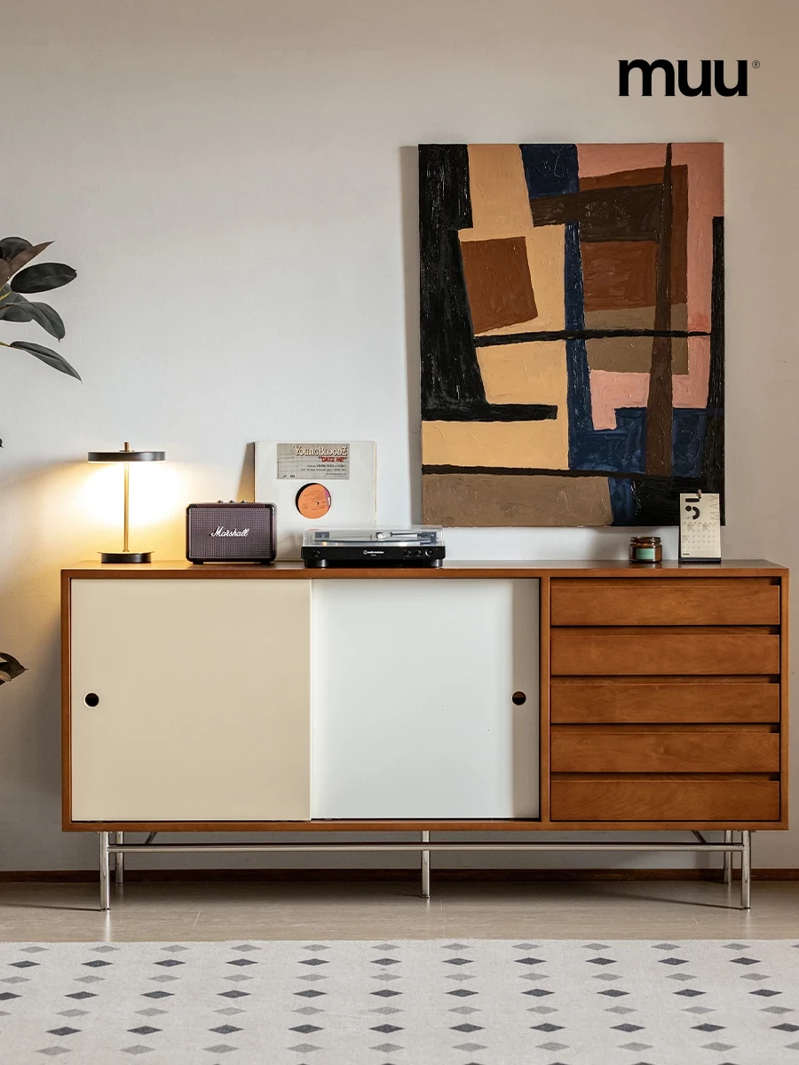 MUU Nordic Solid Wood Vintage Chest of Drawers with Sliding Doors - Stylish Storage Solution for Your Home