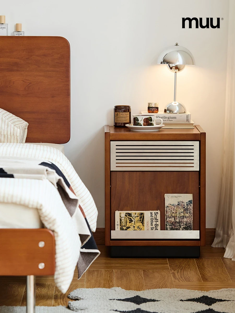 MUU Solid Wood Scandinavian Vintage Bedside Table - Stylish Storage Nightstand for Every Bedroom