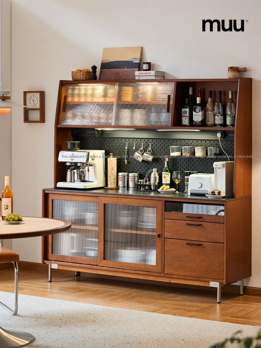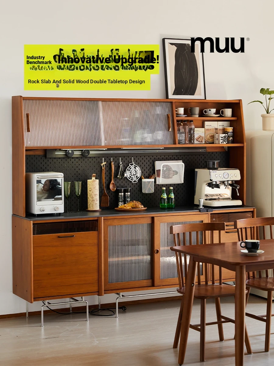 MUU Vintage Solid Wood High Storage Cabinet - Modern Minimalist Sideboard with Elegant Rock Plate Design, Perfect for Wall-Mounted Use and Enhancing Your Dining Experience with a Touch of Luxury.