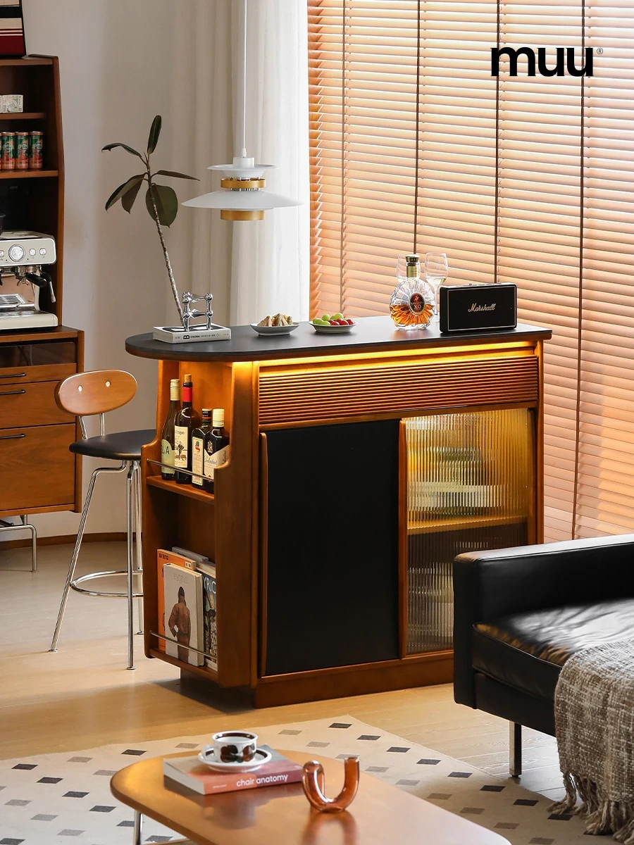 Solid Wood MUU Rock Panel Bar Cabinet - Stylish Living Room Partition, Dresser, Balcony Island Table, Entryway Storage, and Modern Sideboard for Efficient Organization