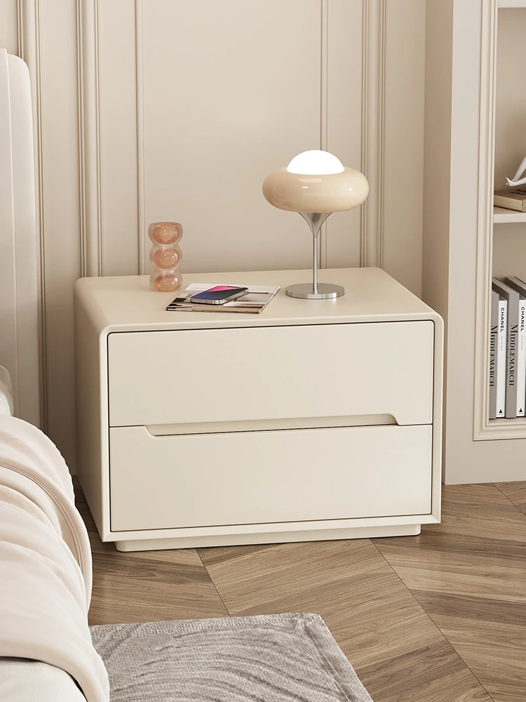 "Modern Minimalist Solid Wood Nightstand – Chic and Stylish Bedroom Storage Cabinet with Creamy Elegance for a Luxurious Touch"