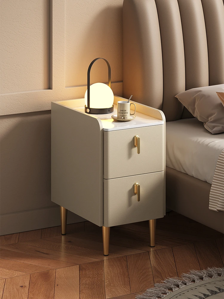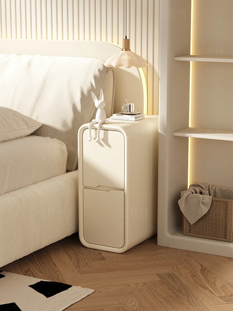 Narrow Nightstand 2024 New Creamy Minimalist Modern Ultra-Slim Bedside Cabinet for Small Spaces - Perfect for Bedroom Gaps and Compact Living!