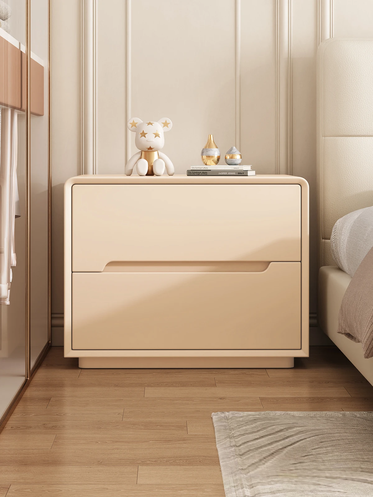 **Elegant Minimalist Solid Wood Nightstand 2024 - Chic Cream-Style Bedside Cabinet for Modern Bedrooms - Compact Luxury Storage Solution**