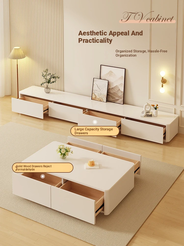 Creamy Style Floor Cabinet for Living Room - Versatile and Stylish Rock Plate Combination for Home Decor