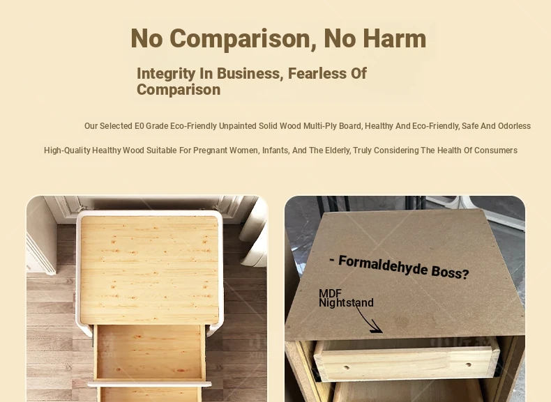 クリーム色-免安装【E0級輸入無臭パイン材+厚手の無垢材引き出し】