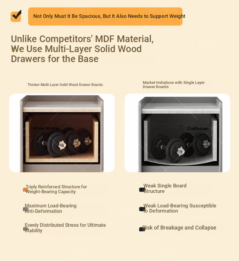 米白色-免安装【国産高密度フレーム+厚手の無垢材引き出し】