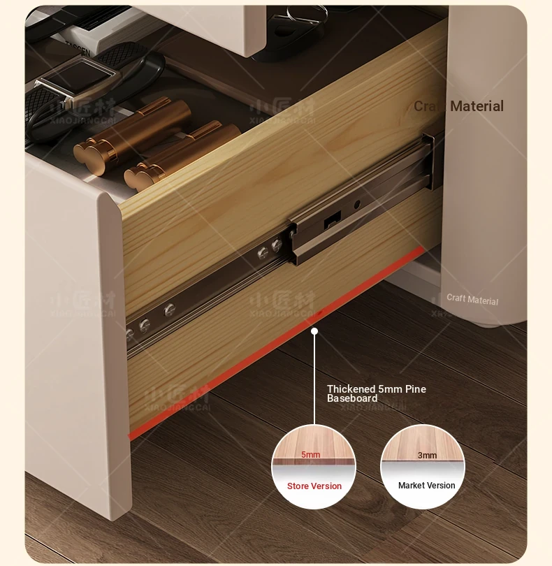 米白色-免安装【E0級輸入無臭パイン材+厚手の無垢材引き出し】