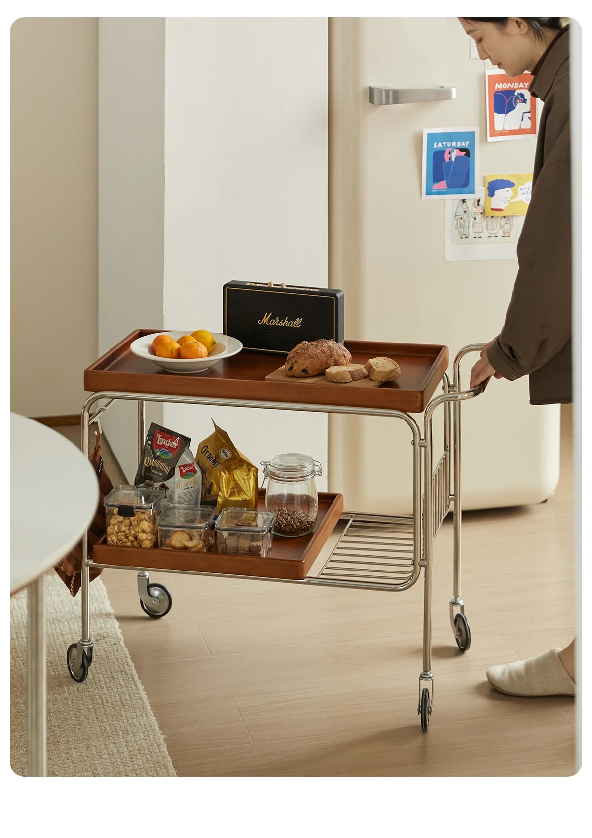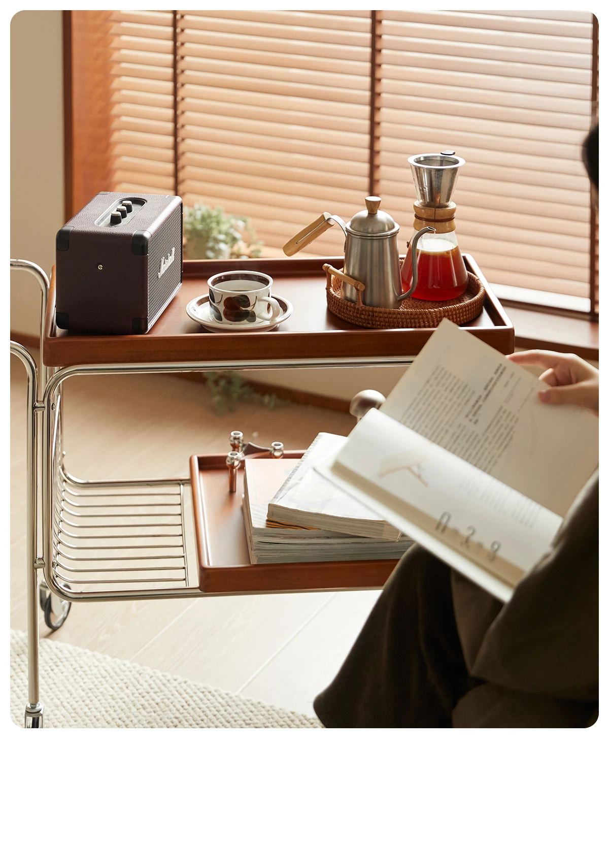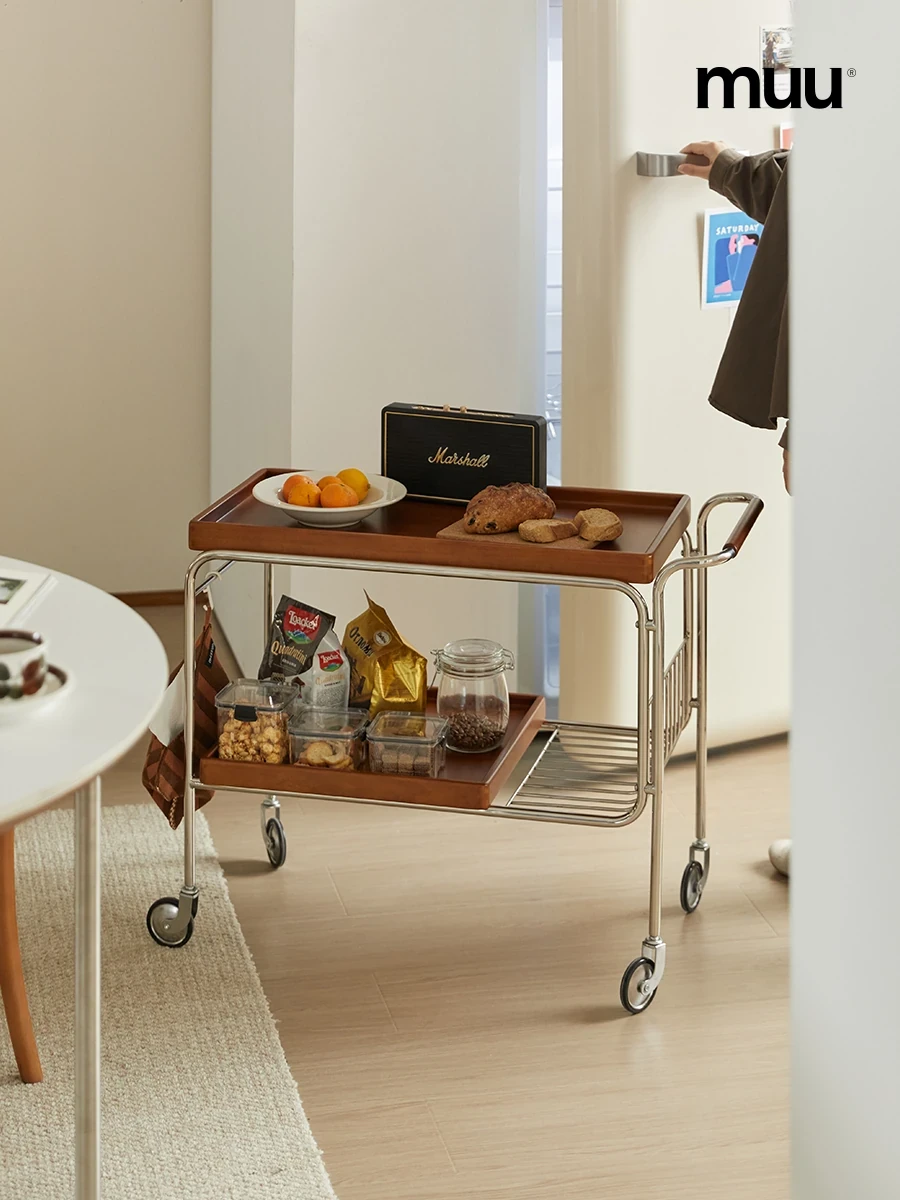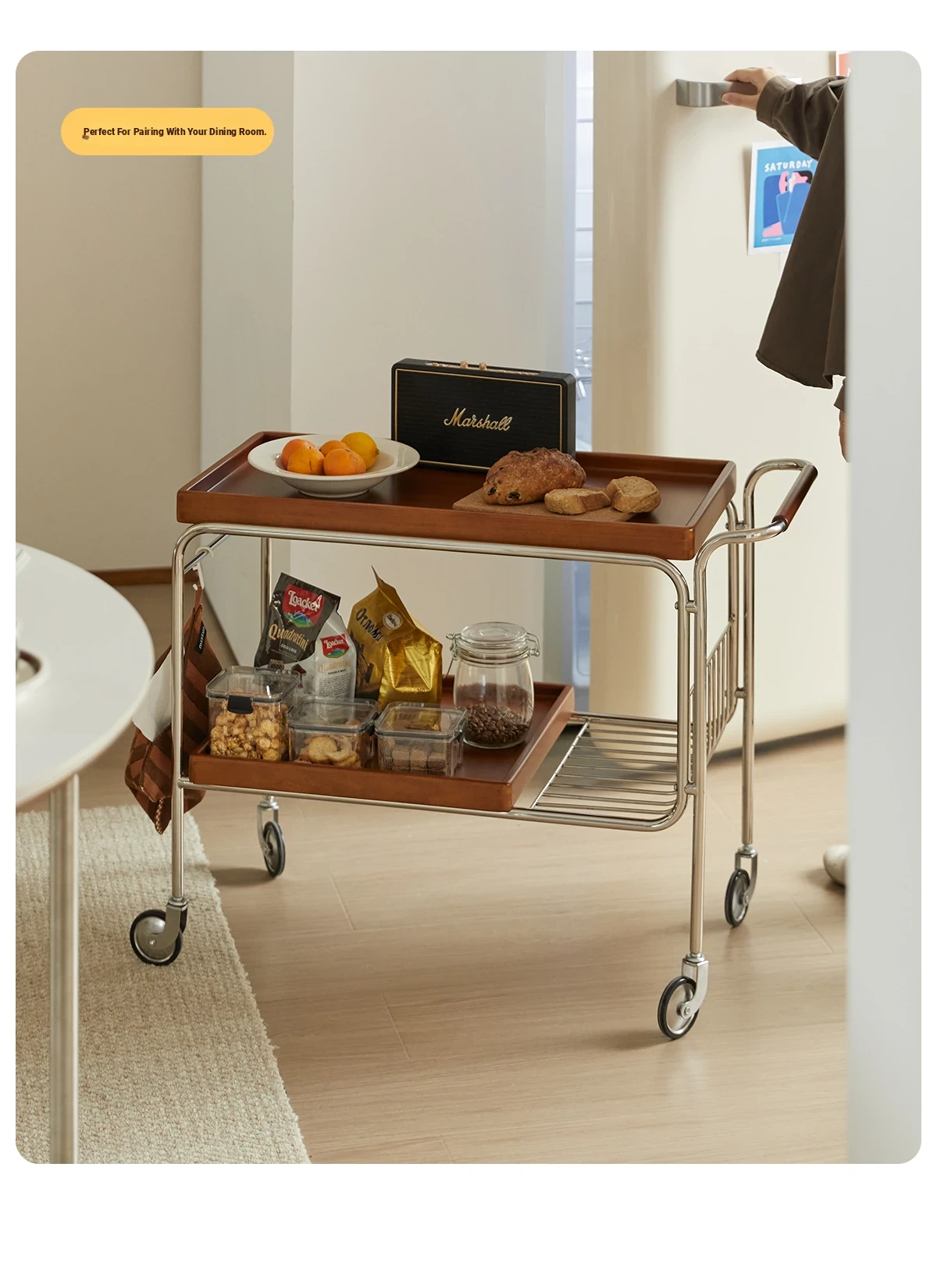 MUU Vintage Solid Wood Serving Cart - Elegant Tea & Dining Trolley for Your Living Room, Perfect for Entertaining Guests!