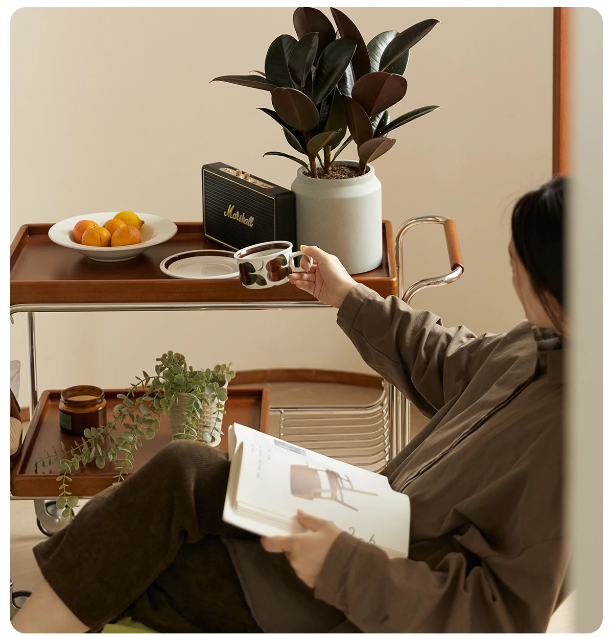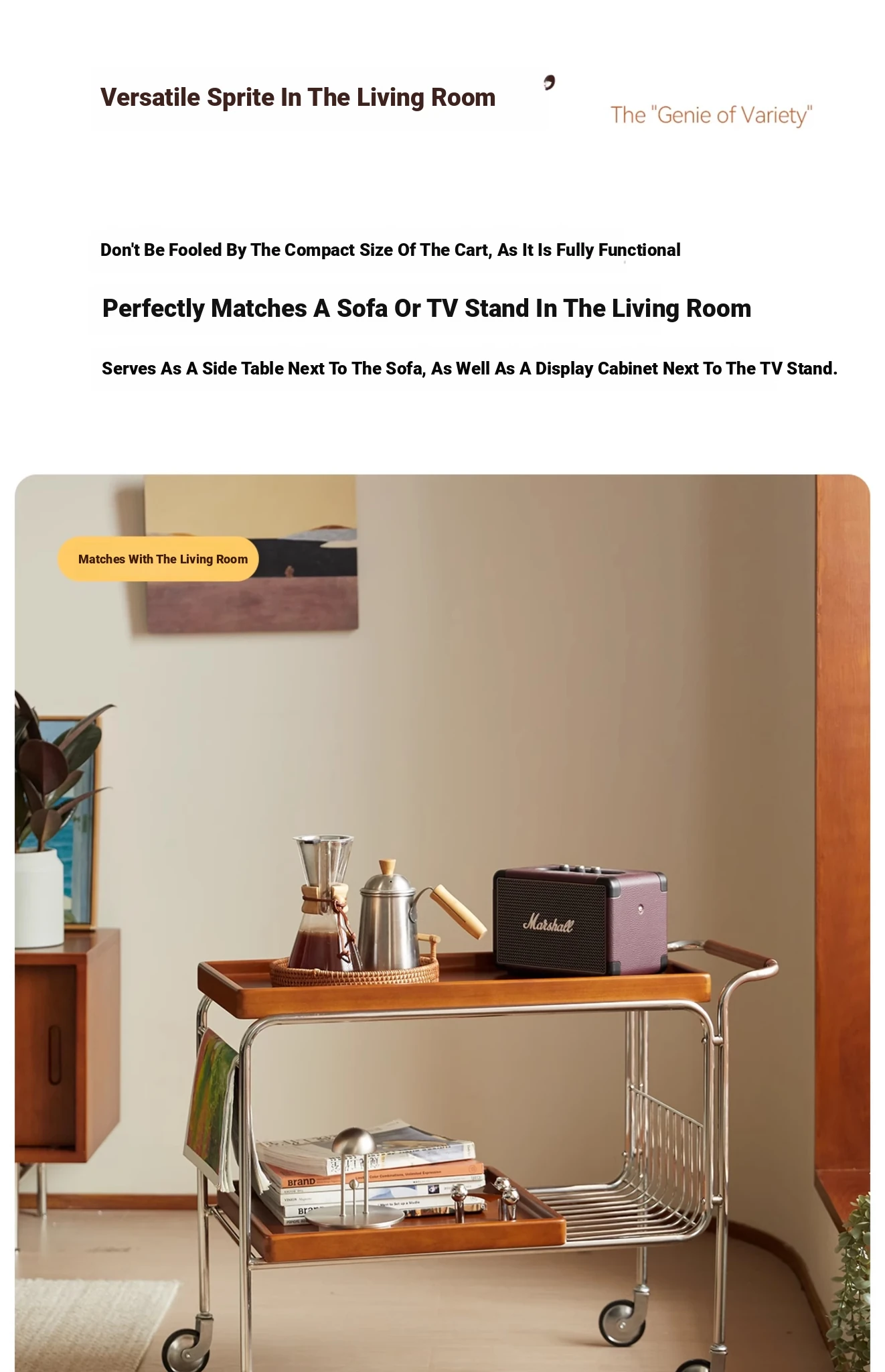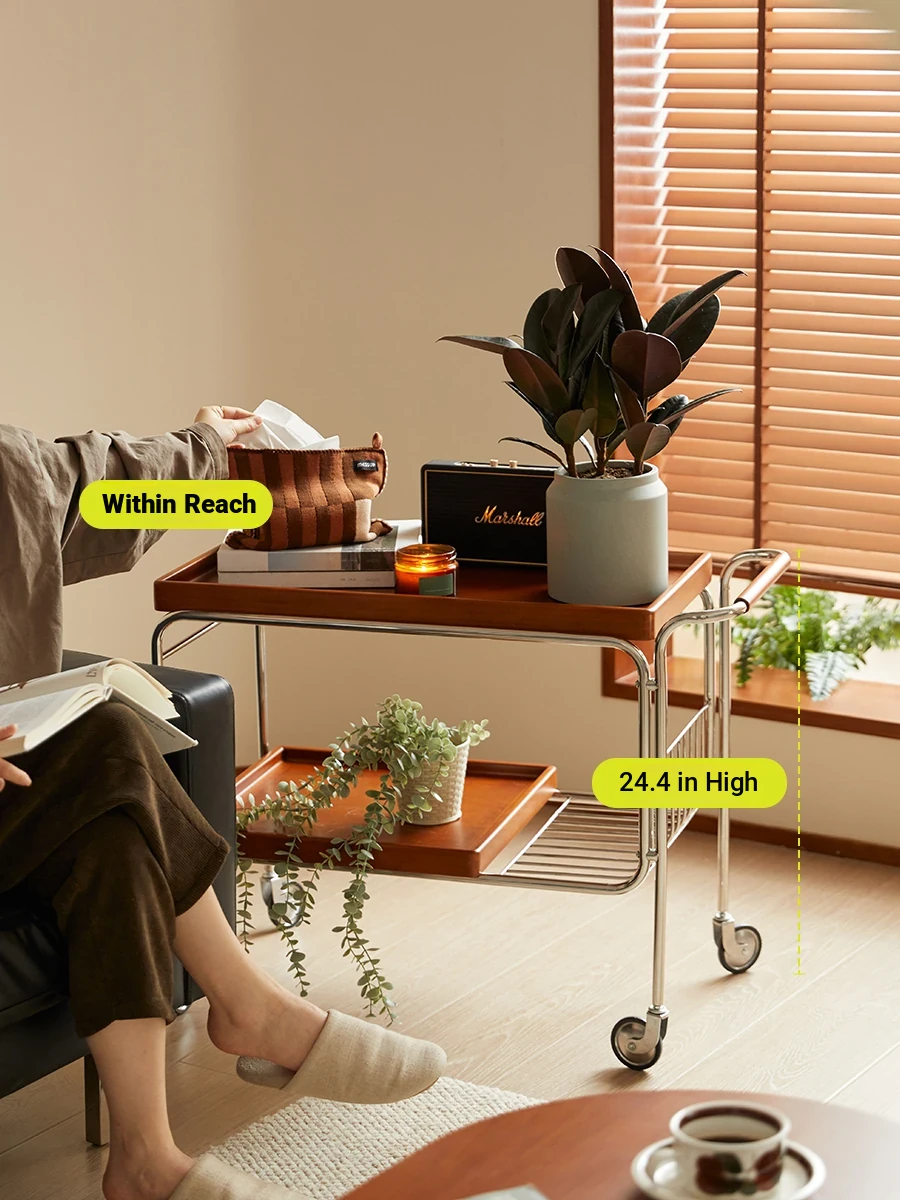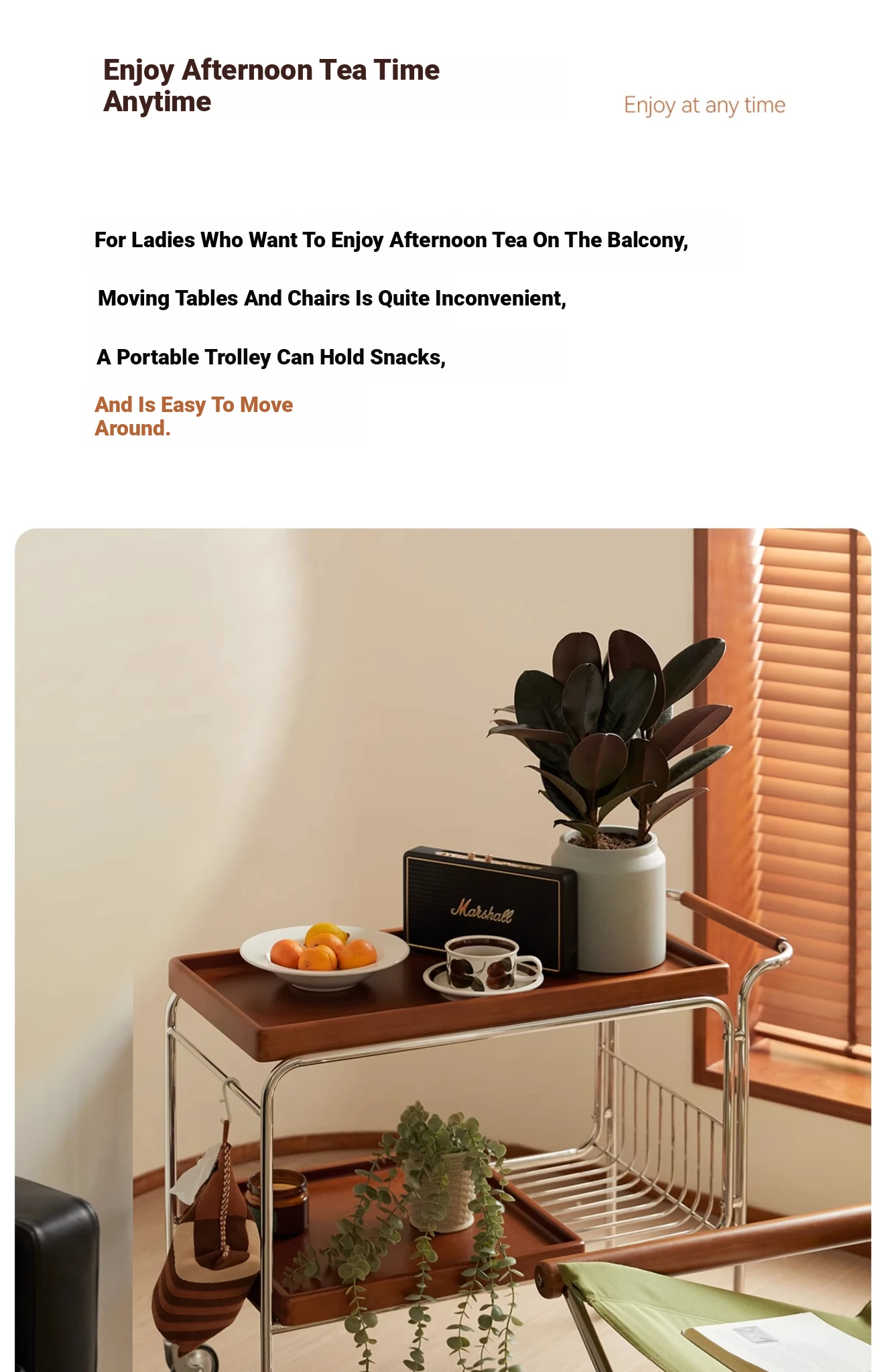 MUU Vintage Solid Wood Serving Cart - Elegant Tea & Dining Trolley for Your Living Room, Perfect for Entertaining Guests!